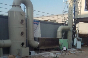 由於每條生產線硫化廢氣總排風量約12000~16000 m3/h,若每條生產線集中采用一套淨化(huà)裝置,勢必使淨化(huà)設備的體積較膨(péng)大,而(ér)生產線(xiàn)之間的(de)場地小,難以布置;另外集中淨化還帶來的問題是,吸口至淨化設備之間的風管容易積油(廢氣中含油)。一旦火星進入風管會引起著火。所以采取在每個吸口(kǒu)就近處設置(zhì)一淨化設(shè)備。