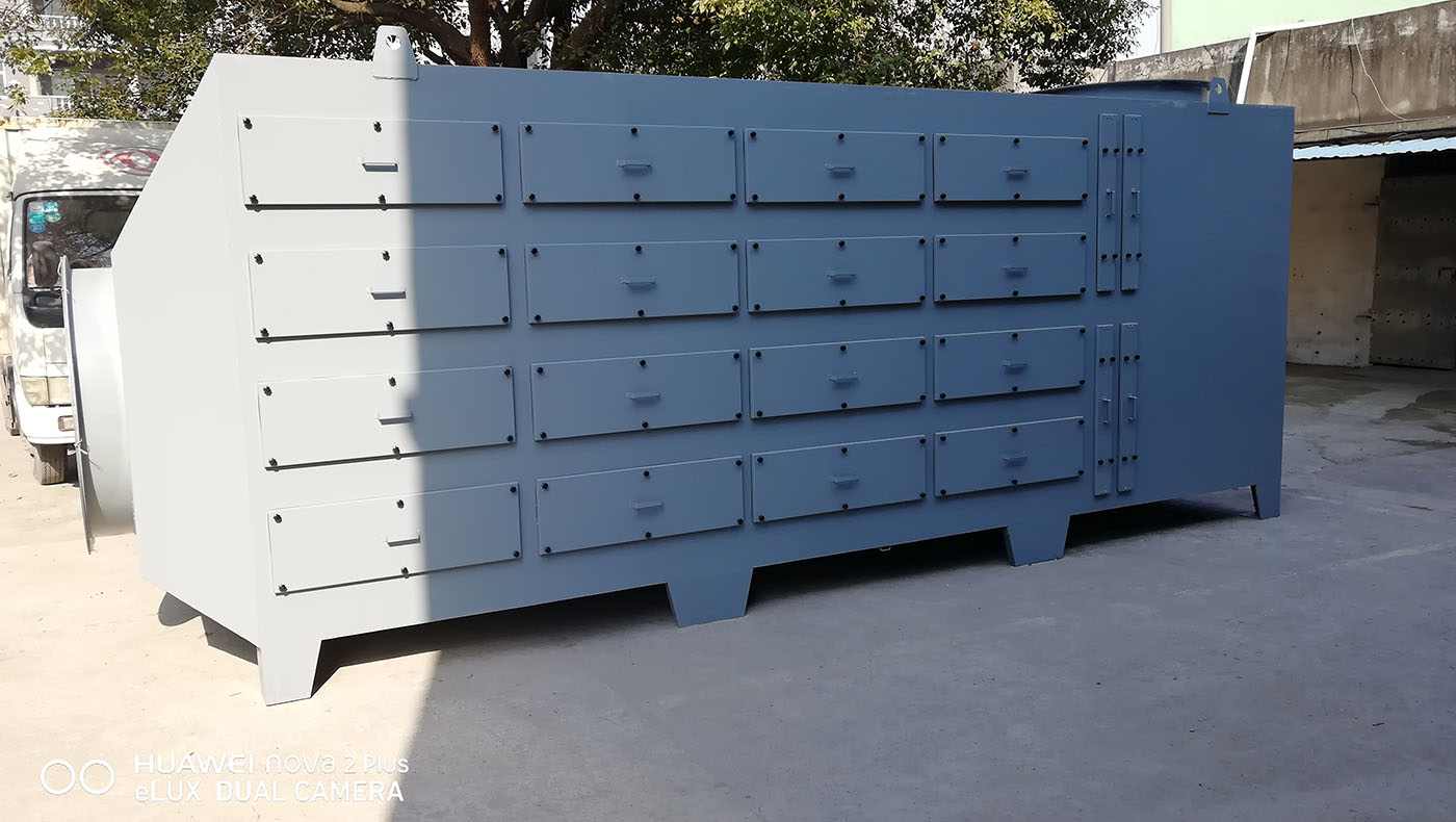 活性炭過濾器的上下遊均應有好的(de)除塵過濾(lǜ)器,其效率規(guī)格應不低於F7。上遊過濾器防止灰塵堵塞活性炭材料;下遊過濾器攔住活性炭本身的發塵。